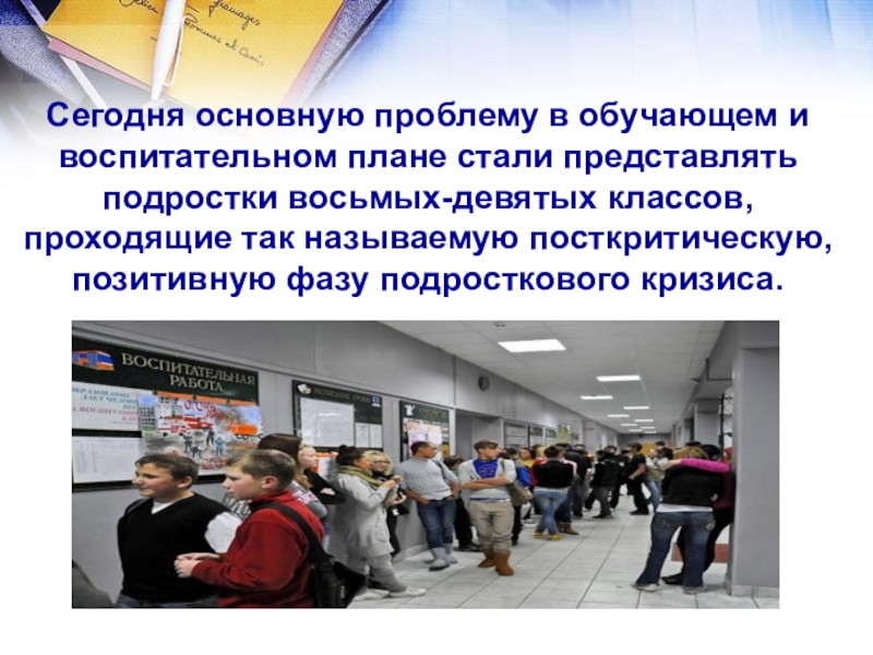 восьмых-девятых классов, проходящие так называемую посткритическую, позитивную фазу подросткового кризиса.