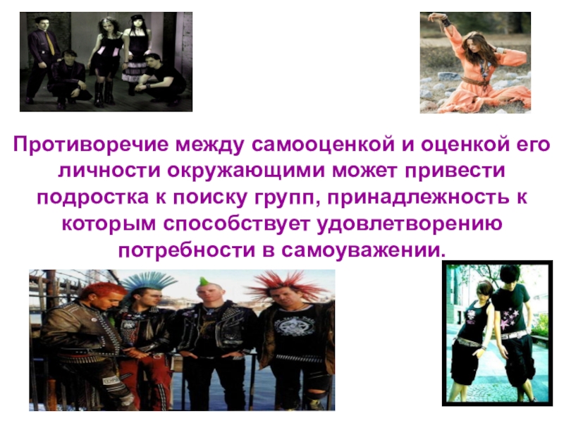 Слайд 131Противоречие между самооценкой и оценкой его личности окружающими может привести подростка