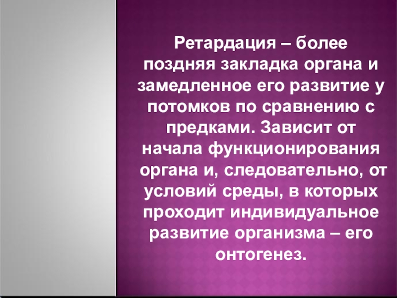 Слайд 4Ретардация – более поздняя закладка органа и замедленное его развитие у