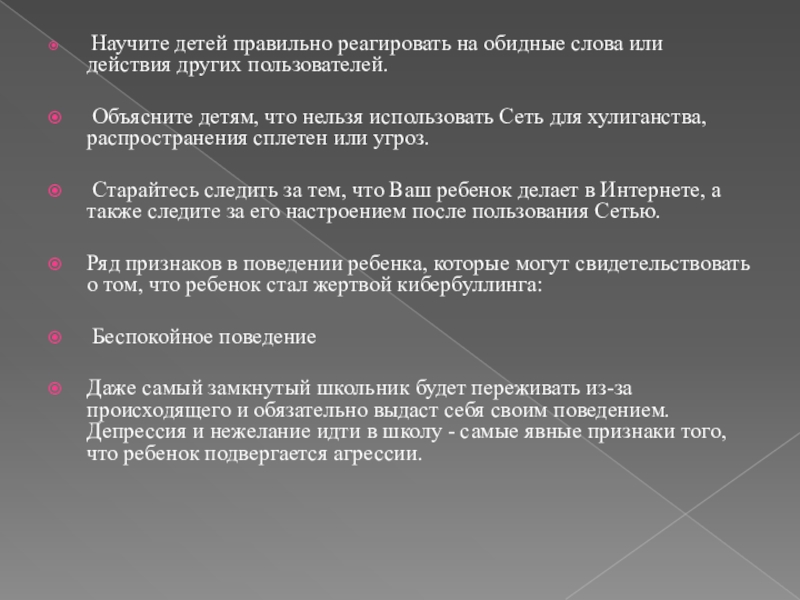 Слайд 18 Научите детей правильно реагировать на обидные слова или действия других