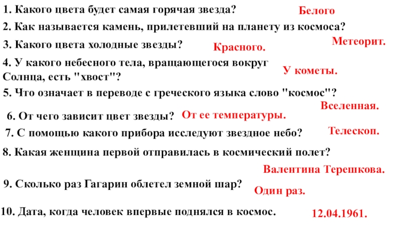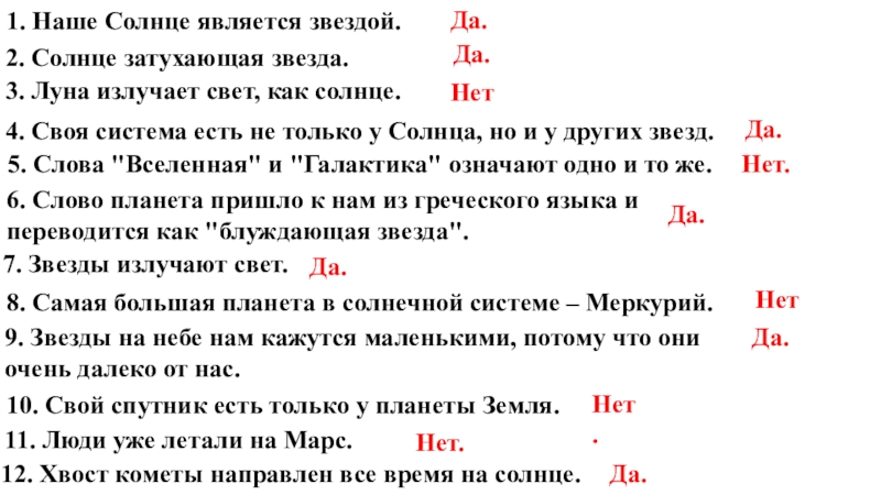 9. Звезды на небе нам кажутся маленькими, потому что они очень далеко от нас.