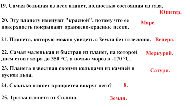 19. Самая большая из всех планет, полностью состоящая из газа.