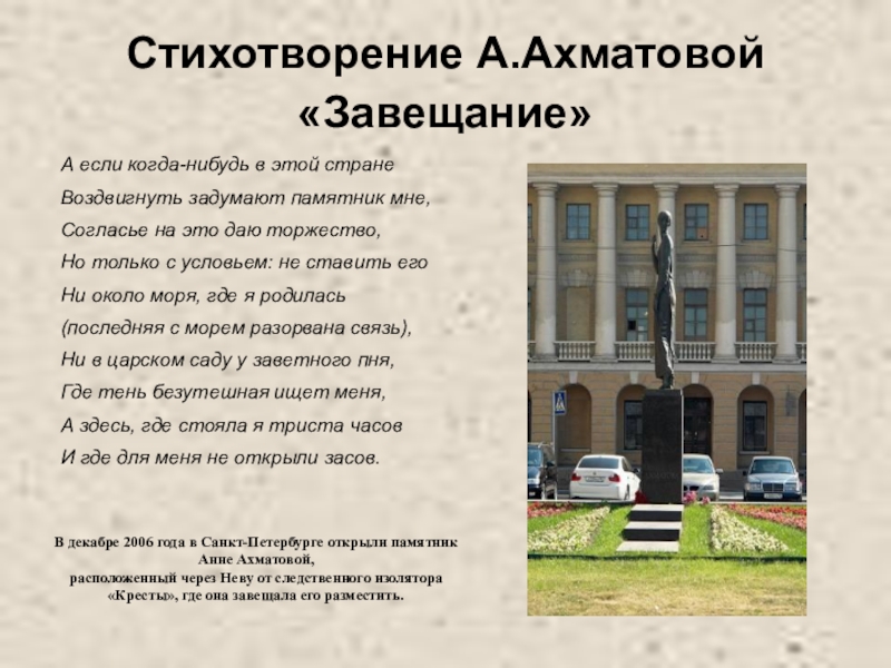 В декабре 2006 года в Санкт-Петербурге открыли памятник Анне Ахматовой,