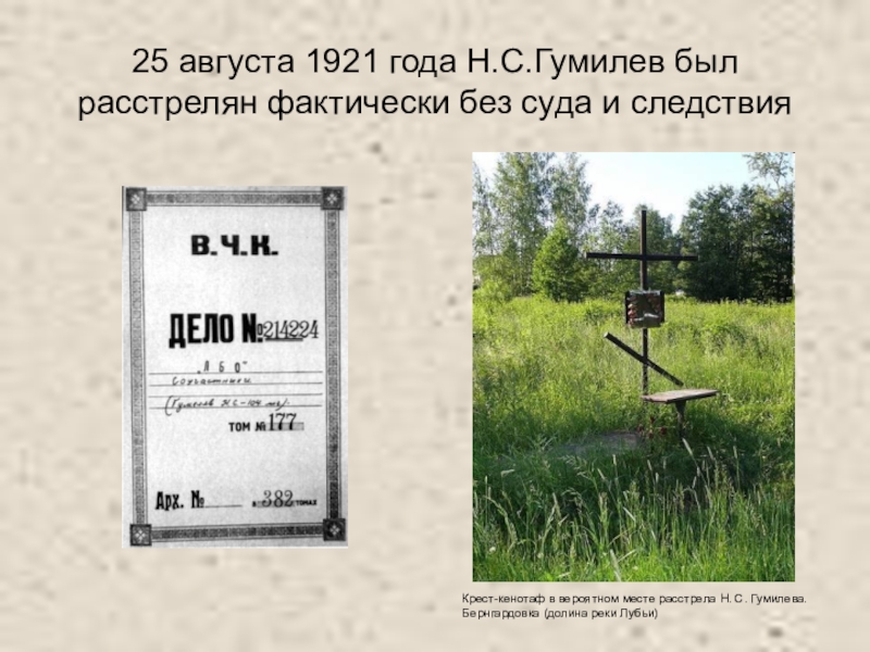Крест-кенотаф в вероятном месте расстрела Н. С. Гумилева.