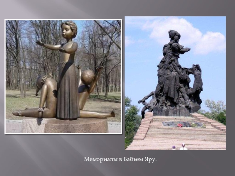 Слайд 14В настоящее время на территории Бабьего Яра находятся несколько памятников и