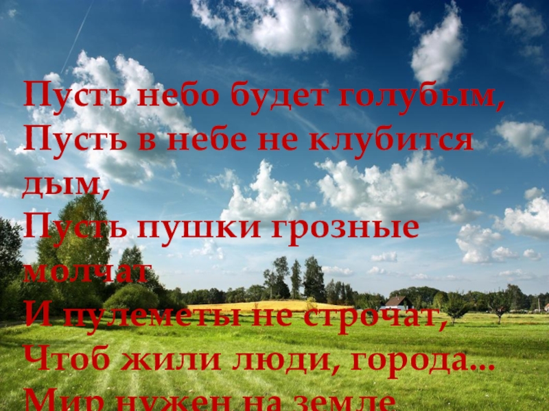 Слайд 22Пусть небо будет голубым, Пусть в небе не клубится дым, Пусть пушки грозные