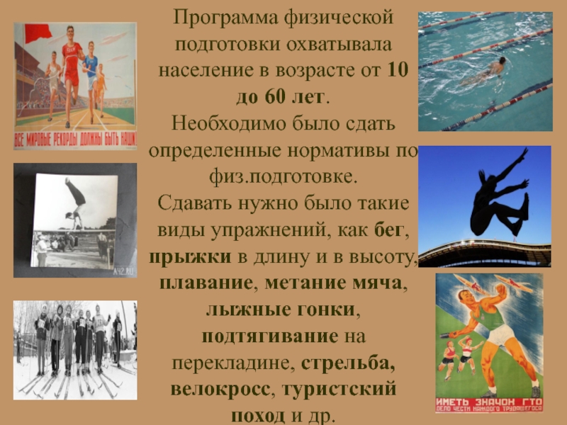 Слайд 3Программа физической подготовки охватывала население в возрасте от 10 до 60