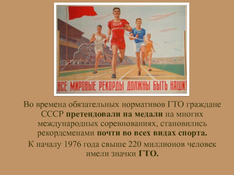 Слайд 26Во времена обязательных нормативов ГТО граждане СССР претендовали на медали на