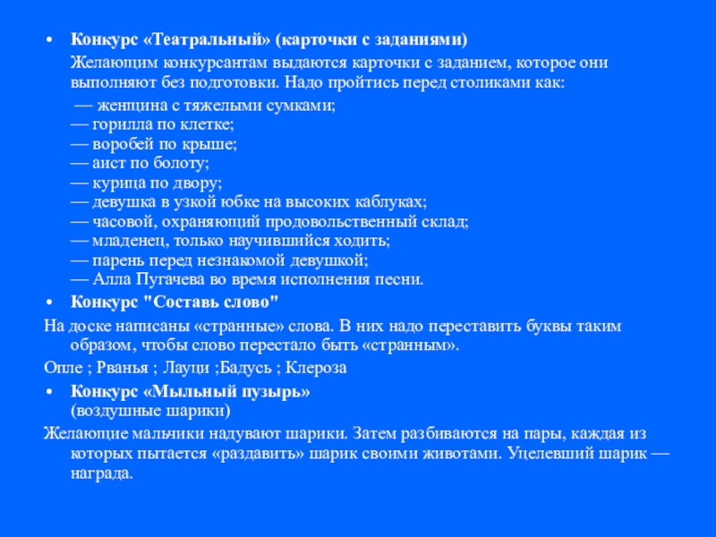 Слайд 17Конкурс «Театральный» (карточки с заданиями)