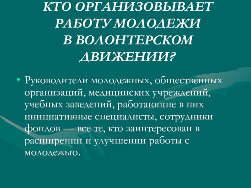 КТО ОРГАНИЗОВЫВАЕТ РАБОТУ МОЛОДЕЖИ