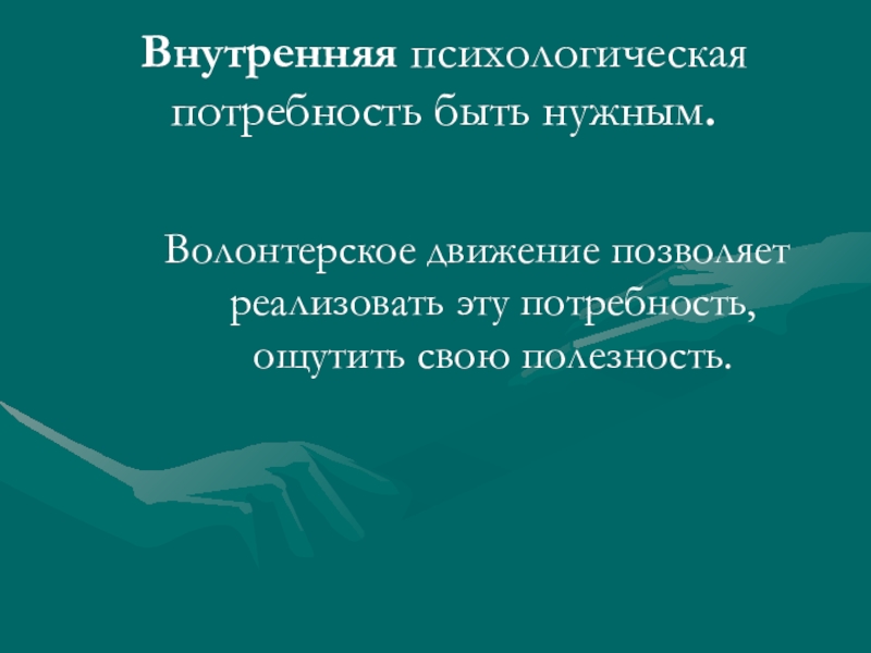Волонтерское движение позволяет реализовать эту потребность,
