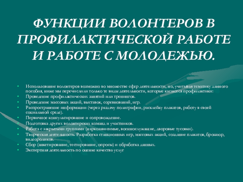 ФУНКЦИИ ВОЛОНТЕРОВ В ПРОФИЛАКТИЧЕСКОЙ РАБОТЕ