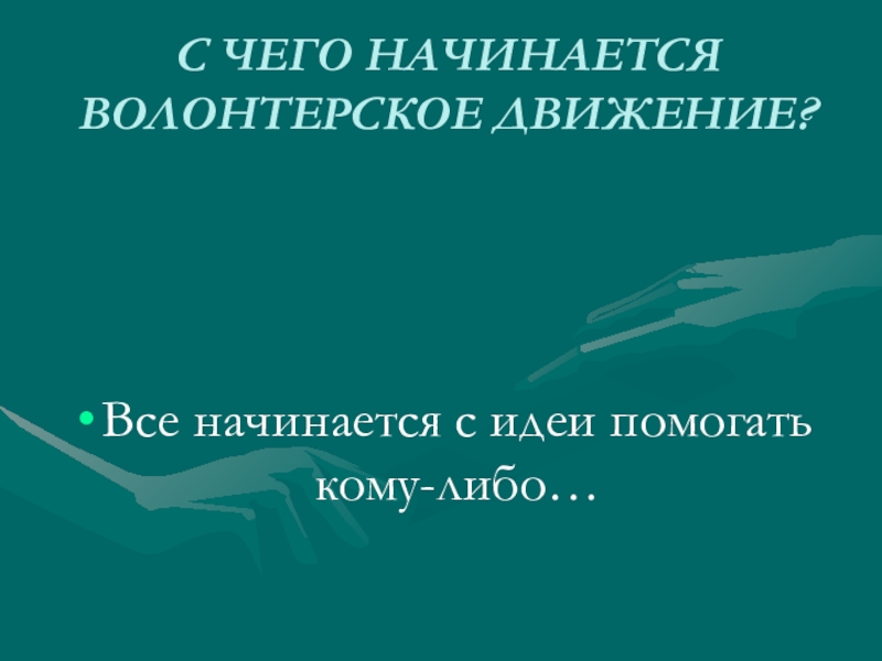 Слайд 9С ЧЕГО НАЧИНАЕТСЯ ВОЛОНТЕРСКОЕ ДВИЖЕНИЕ?