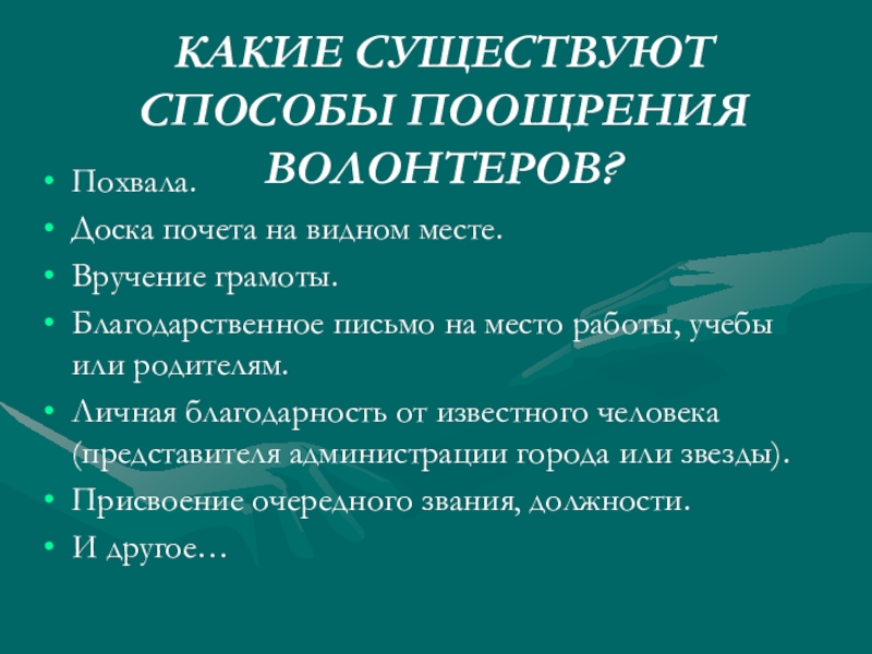 КАКИЕ СУЩЕСТВУЮТ СПОСОБЫ ПООЩРЕНИЯ ВОЛОНТЕРОВ?