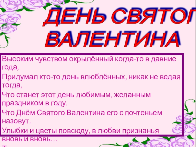 Что Днём Святого Валентина его с почтеньем назовут.