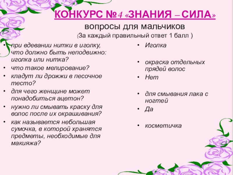 Слайд 15КОНКУРС №4 «ЗНАНИЯ – СИЛА»