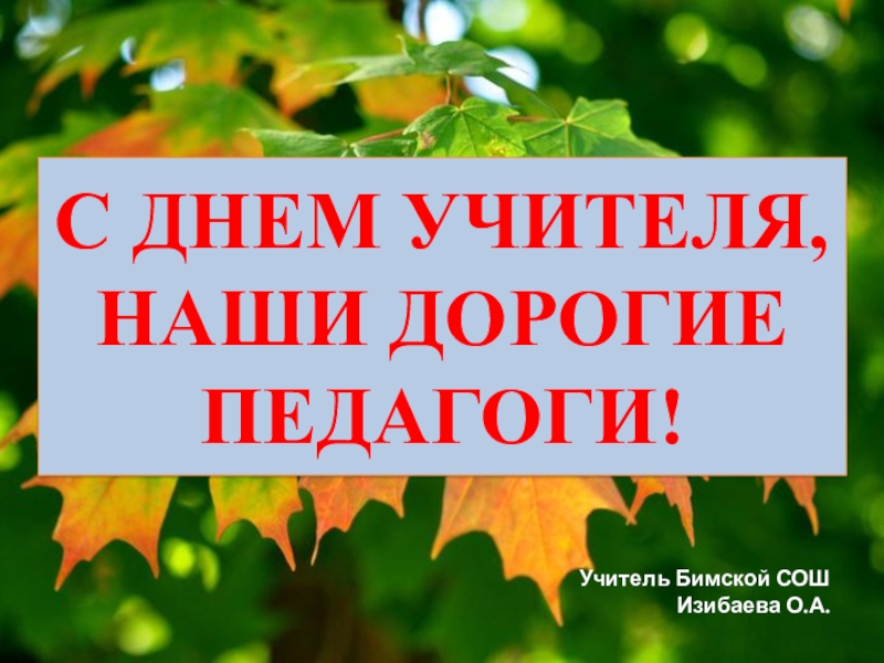 С ДНЕМ УЧИТЕЛЯ, НАШИ ДОРОГИЕ ПЕДАГОГИ!Учитель Бимской СОШИзибаева О.А.