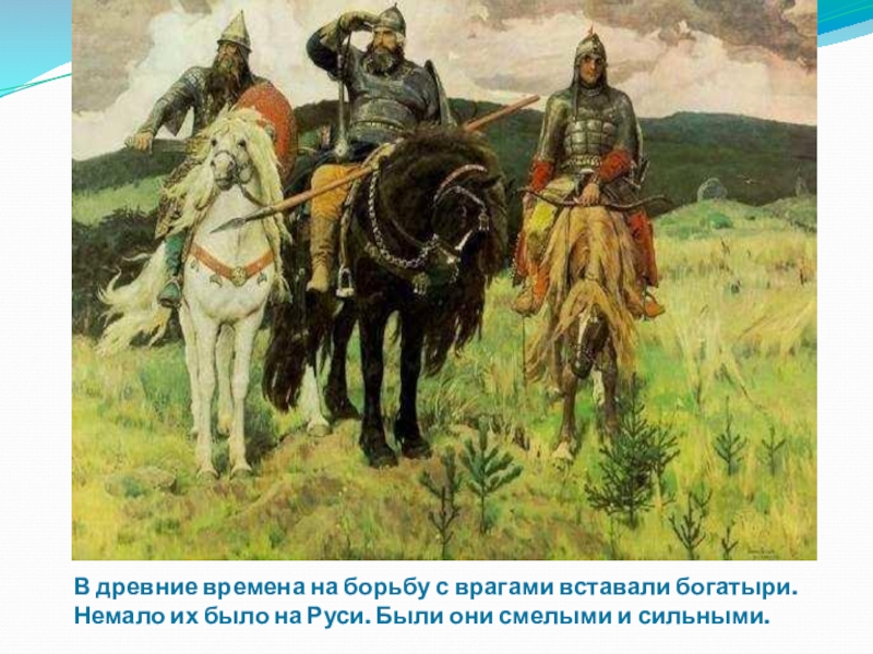 Слайд 3В древние времена на борьбу с врагами вставали богатыри.