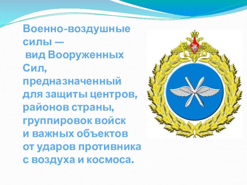 Слайд 15Военно-воздушные силы —