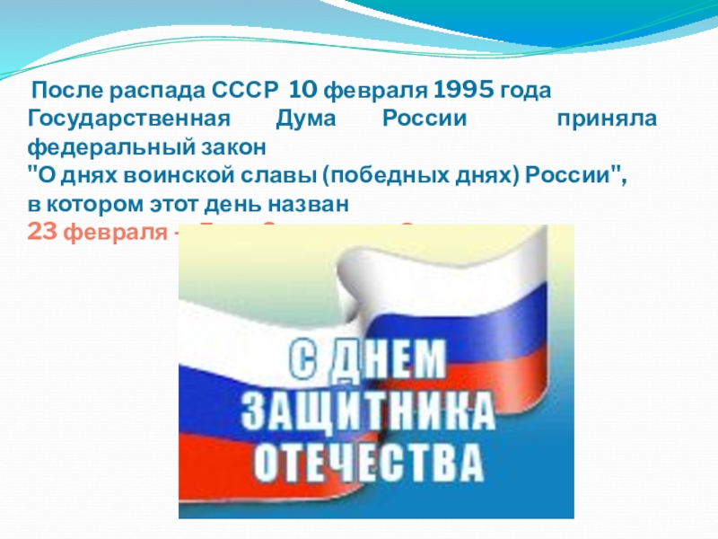 Слайд 10 После распада СССР 10 февраля 1995 года