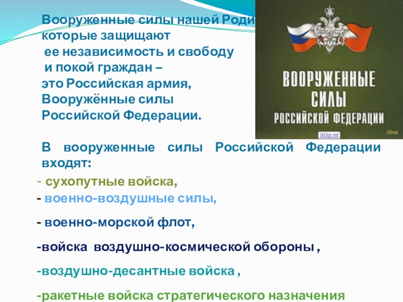 В вооруженные силы Российской Федерации входят: