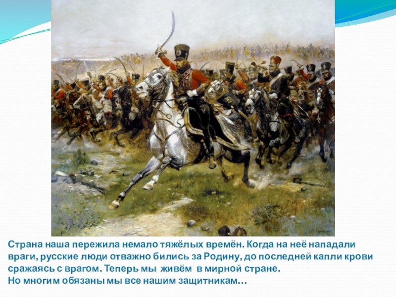 Слайд 2Страна наша пережила немало тяжёлых времён. Когда на неё нападали враги,
