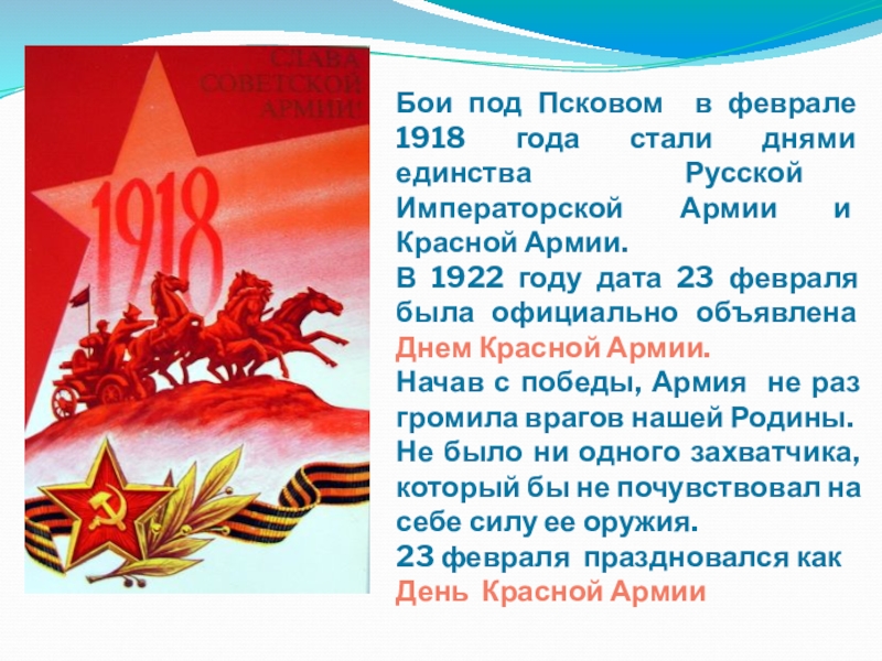 В 1922 году дата 23 февраля была официально объявлена Днем Красной Армии.