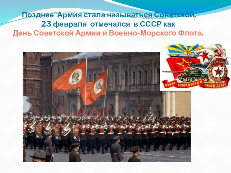 Слайд 9 Позднее Армия стала называться Советской,