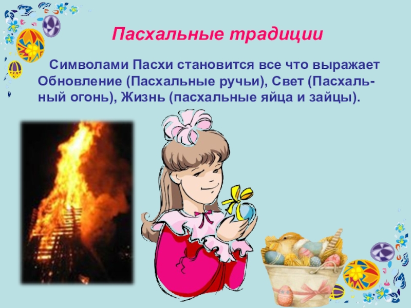 ручьи), Свет (Пасхаль-ный огонь), Жизнь (пасхальные яйца и зайцы).