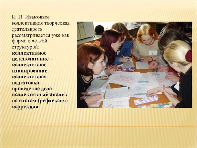 Слайд 2И. П. Ивановым коллективная творческая деятельность рассматривается уже как форма с