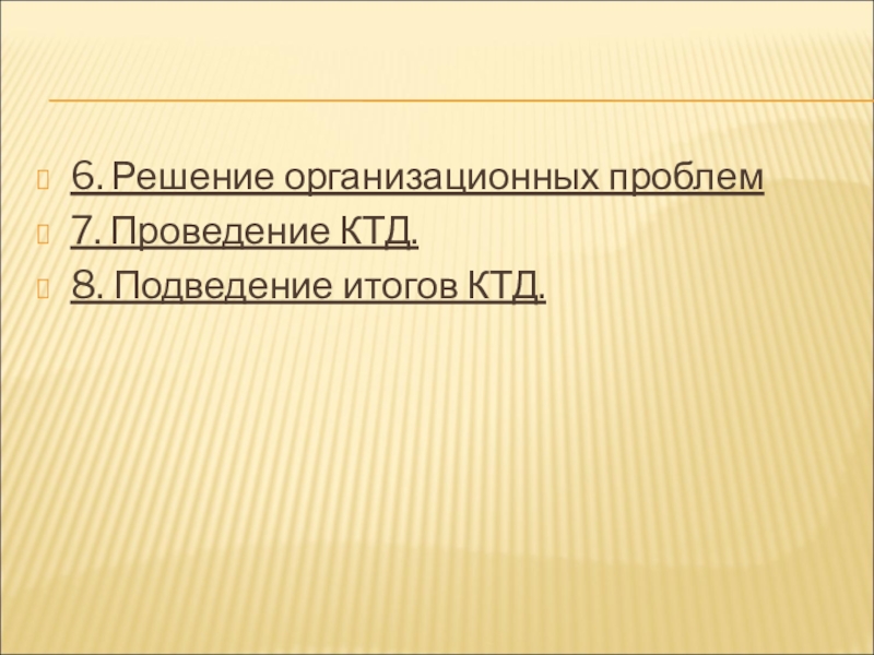 6. Решение организационных проблем7. Проведение КТД.8. Подведение итогов КТД.