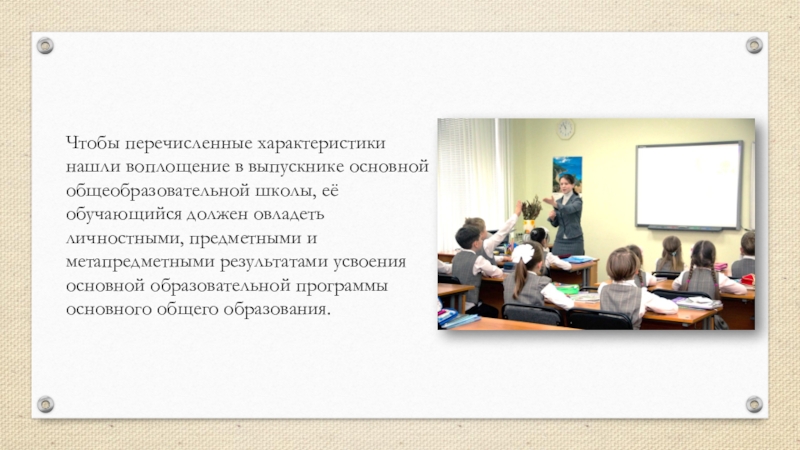 Слайд 4Чтобы перечисленные характеристики нашли воплощение в выпускнике основной общеобразовательной школы, её