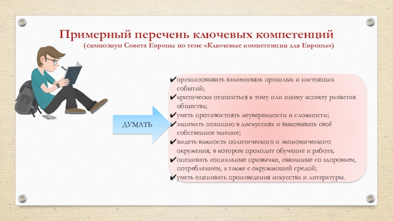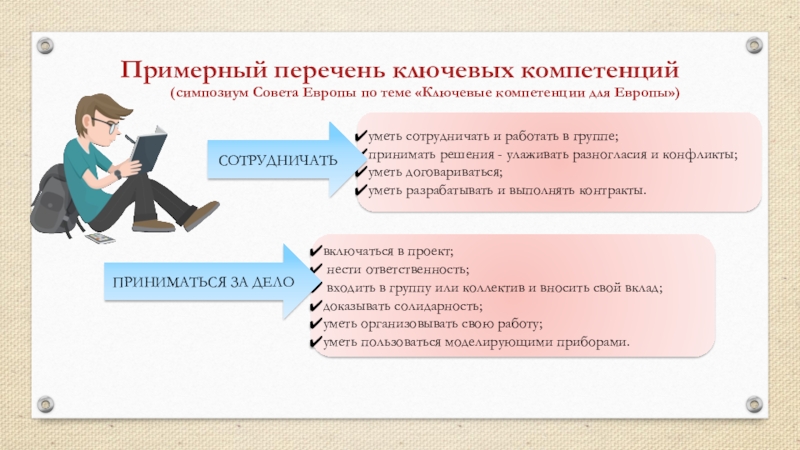 Слайд 21Примерный перечень ключевых компетенций