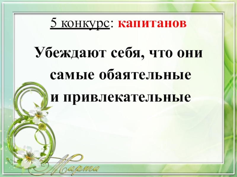 5 конкурс: капитановУбеждают себя, что они самые обаятельные и привлекательные