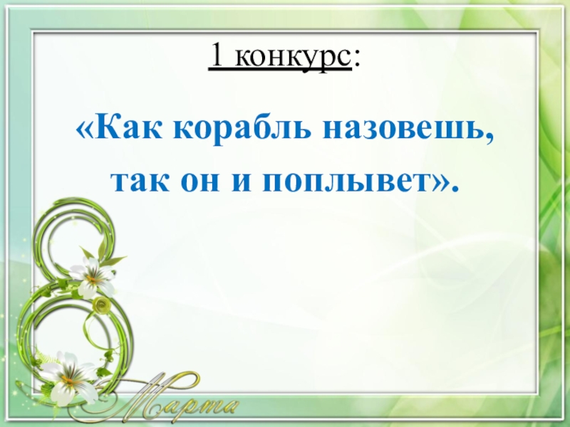 1 конкурс:«Как корабль назовешь, так он и поплывет».
