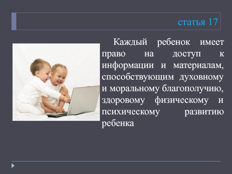 Каждый ребенок имеет право на доступ к информации и материалам,