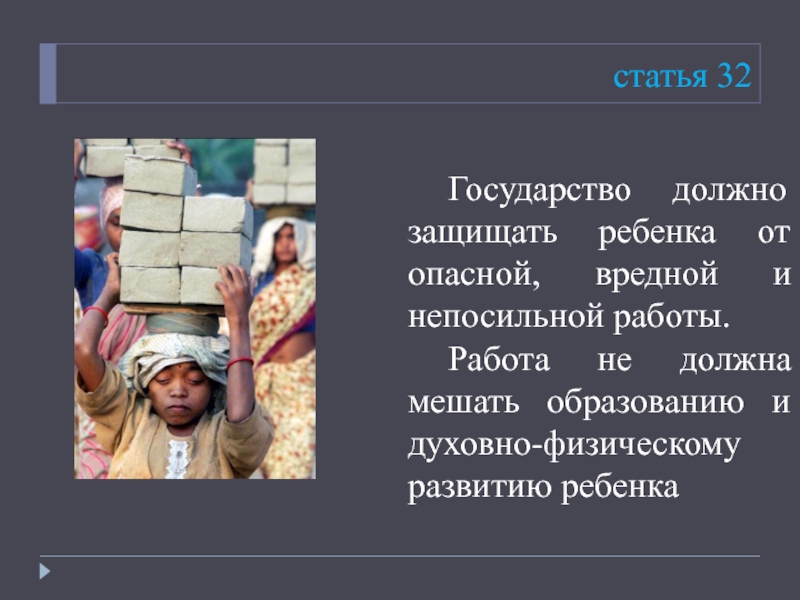 Государство должно защищать ребенка от опасной, вредной и непосильной работы.
