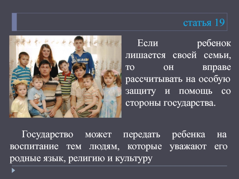 Если ребенок лишается своей семьи, то он вправе рассчитывать на