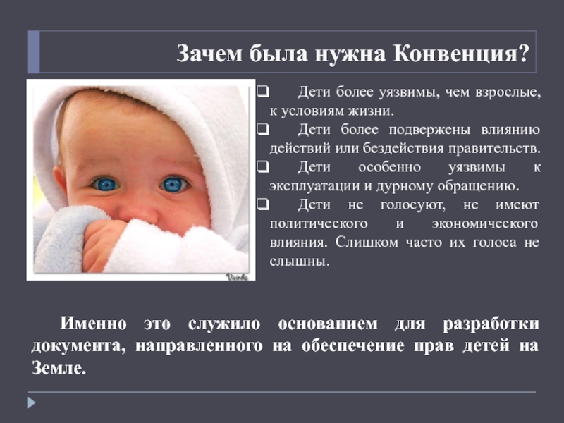 Именно это служило основанием для разработки документа, направленного на обеспечение прав детей на Земле.