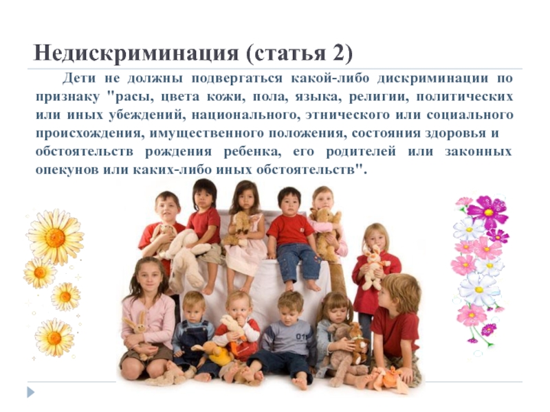 Дети не должны подвергаться какой-либо дискриминации по признаку "расы,