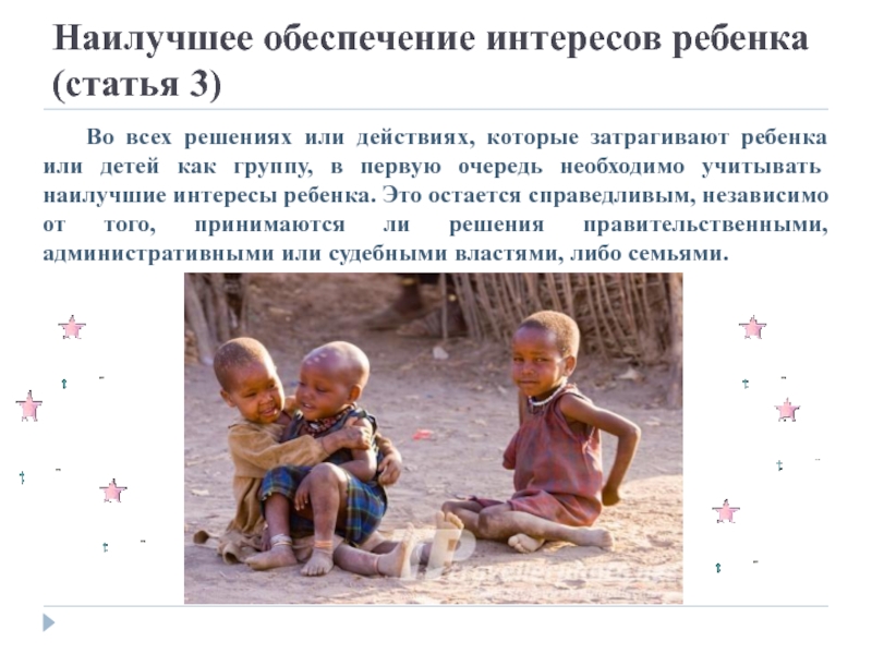 Слайд 6Наилучшее обеспечение интересов ребенка (статья 3)