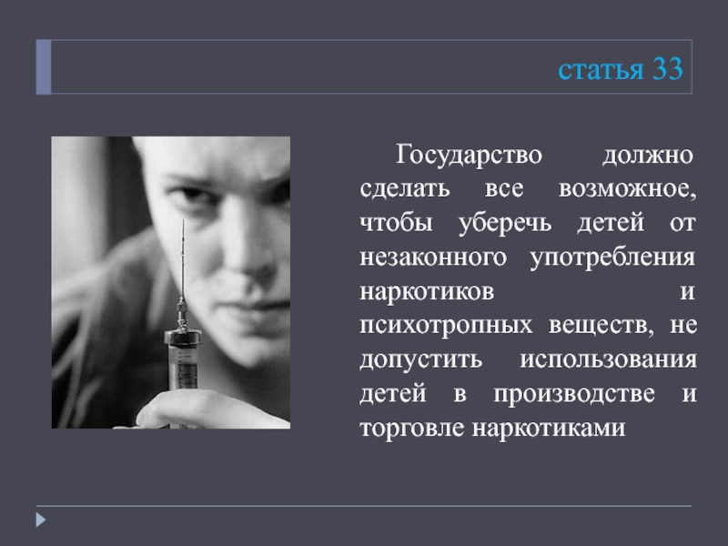 употребления наркотиков и психотропных веществ, не допустить использования детей в производстве и торговле наркотиками