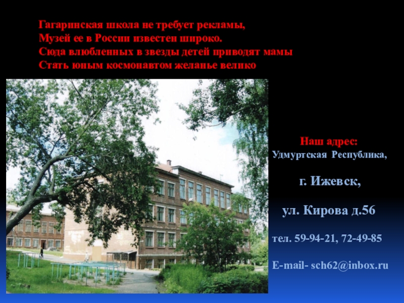 МБОУ «СОШ № 62» им. Ю. Гагарина ,