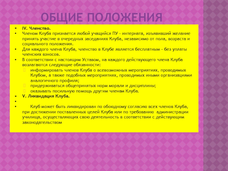 Членом Клуба признается любой учащийся ПУ - интерната, изъявивший