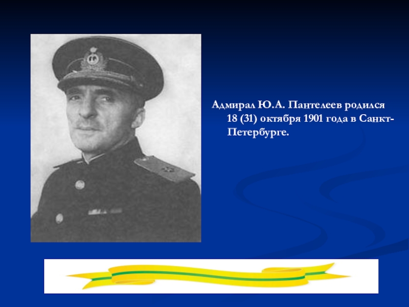 Слайд 33Адмирал Ю.А. Пантелеев родился 18 (31) октября 1901 года в Санкт-Петербурге.