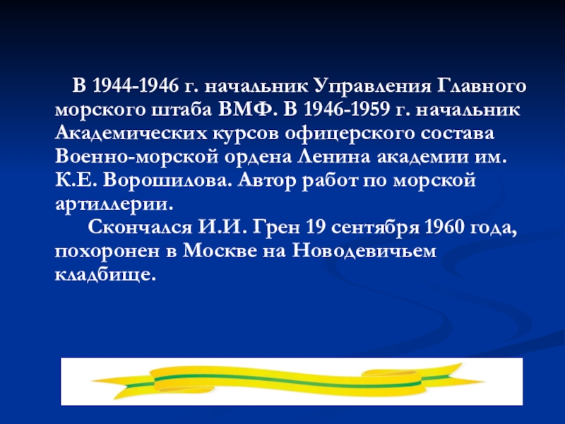 Слайд 24 В 1944-1946 г. начальник Управления Главного морского