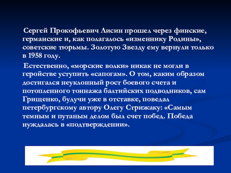 Слайд 42 Сергей Прокофьевич Лисин прошел через финские, германские и,