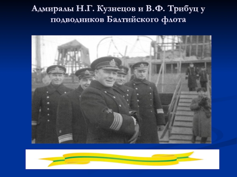 Слайд 26Адмиралы Н.Г. Кузнецов и В.Ф. Трибуц у подводников Балтийского флота