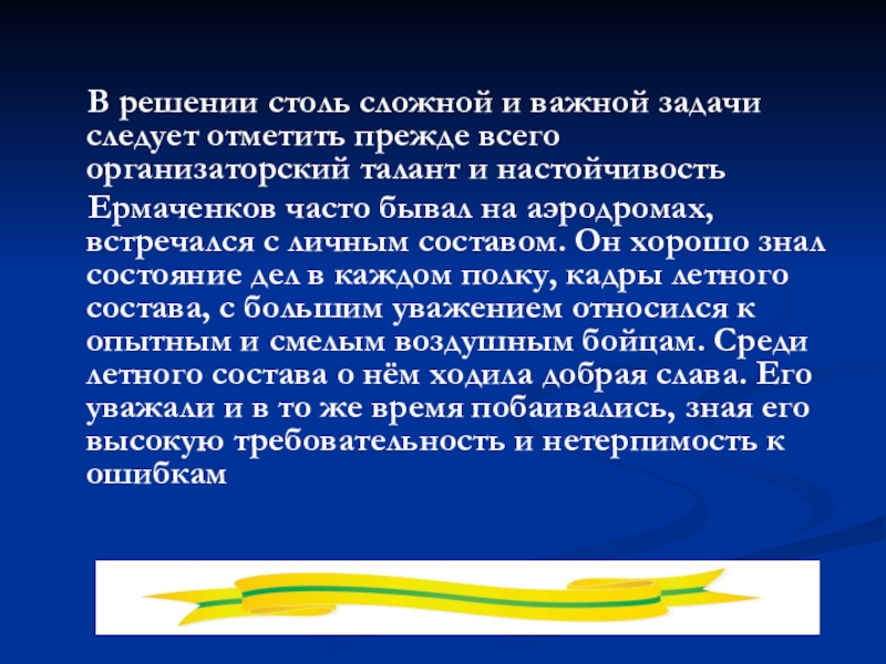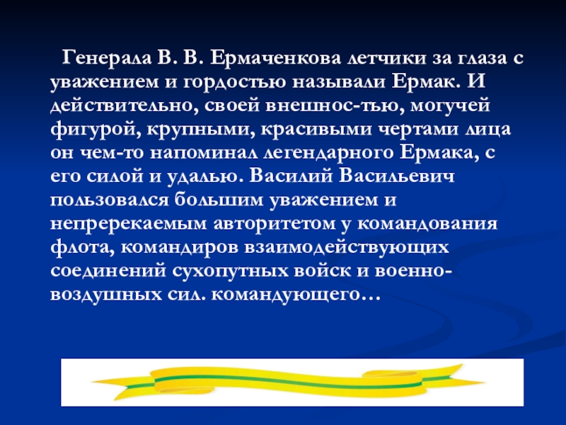 Слайд 19 Генерала В. В. Ермаченкова летчики за глаза с уважением и