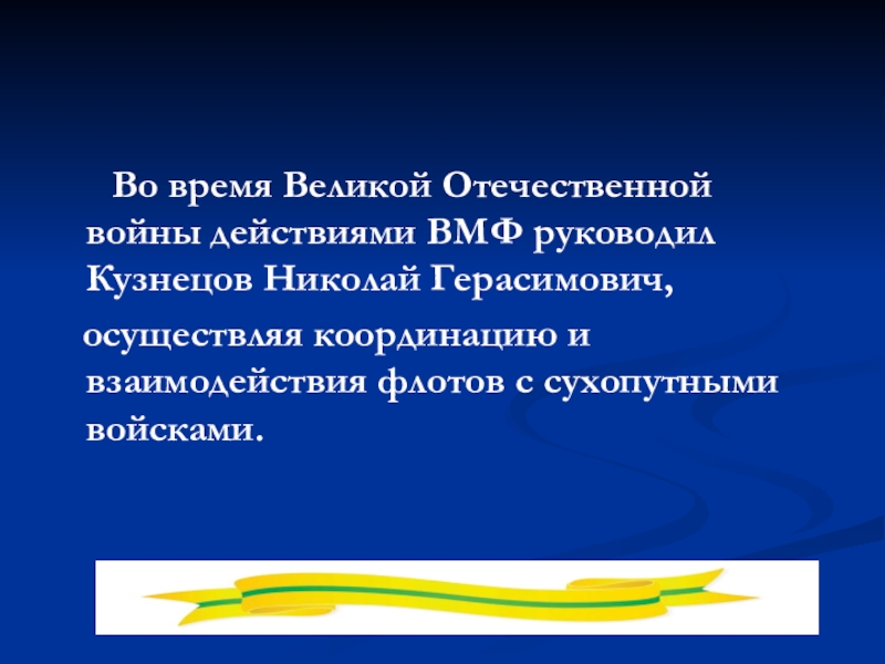 Слайд 8 Во время Великой Отечественной войны действиями ВМФ